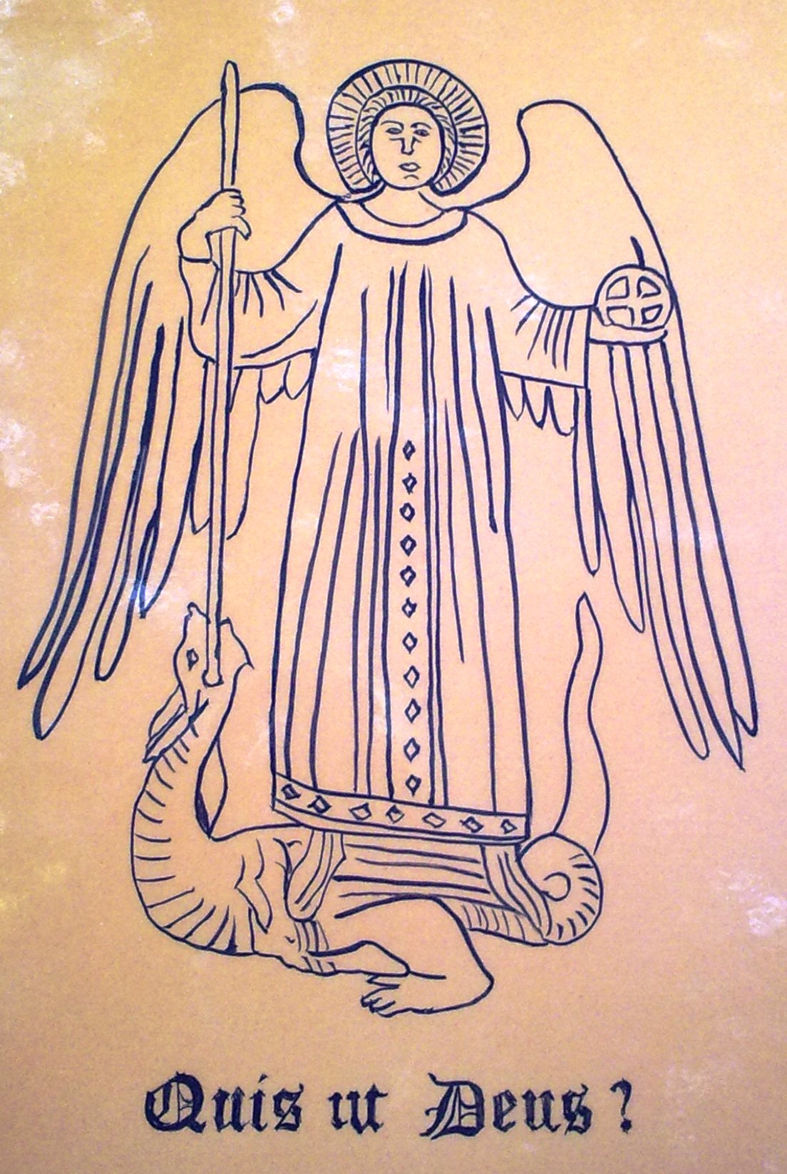 In tutti i luoghi dell’accoglienza dei camminatori della via Francigena del sud viene affissa una maiolica con l’immagine di san Michele che riproduce quella graffita dietro la porta di San Sebastiano, all’inizio della via Appia a Roma.