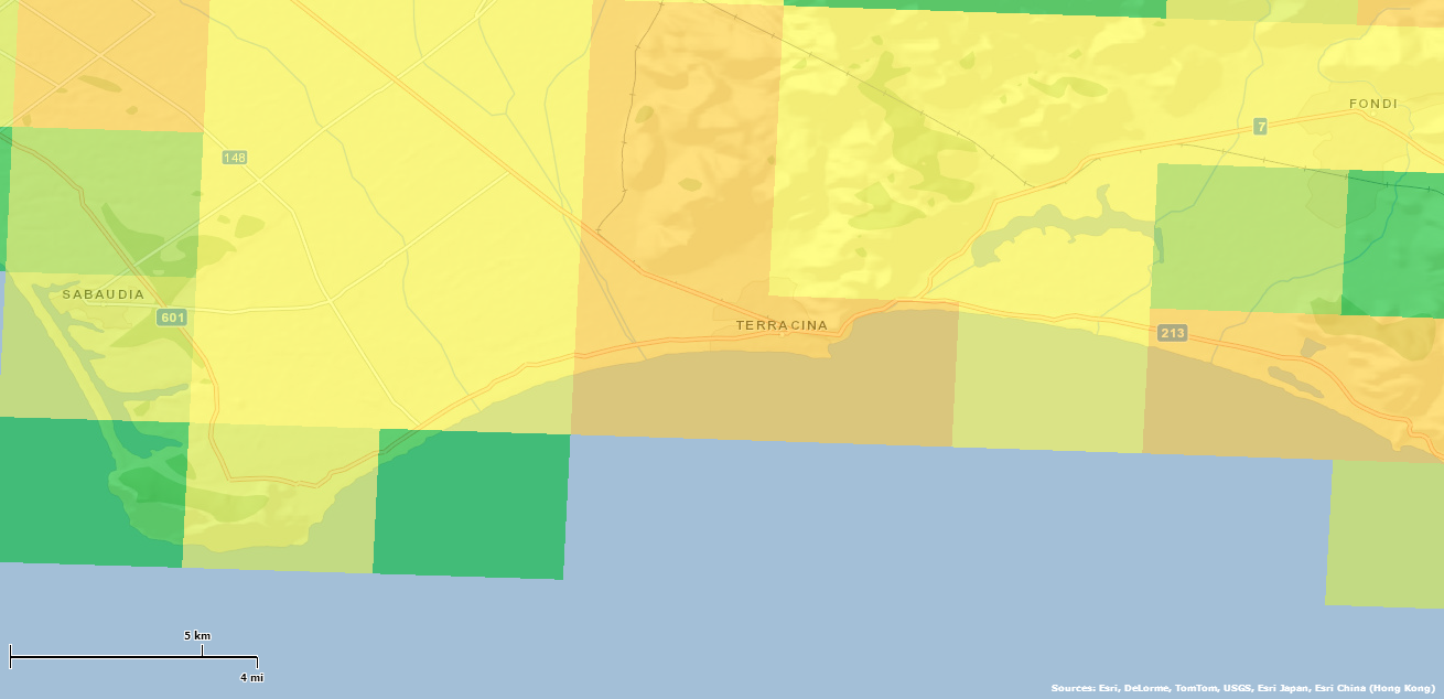 Per esempio, il particolato PM10 causato dal trasporto stradale presente nella zona di Terracina, Sabaudia e San Felice Circeo offre questo quadro
